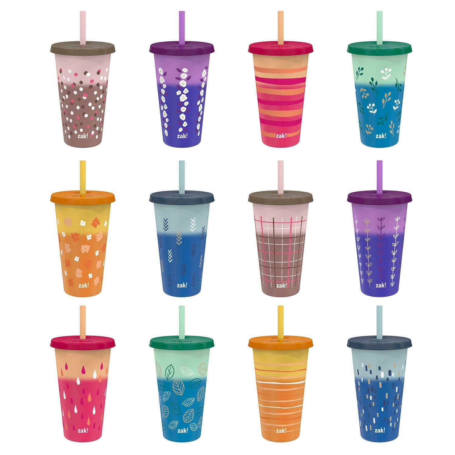 Zak Designs 25 Oz Color Changing Tumbler 12 Pack Set Reusable Plastic With Splash Proof Lids And Straws In Tropical Vibes In Autumn Breeze Walmart Com